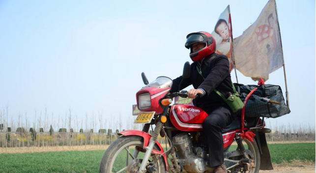 从1999年开始,郭刚堂开始骑摩托车找孩子。车上插着印着儿子照片的旗子,这位父亲,踏上了孤独的旅程。