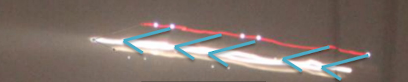 这样基本可以解释,所谓的上下两条细长光线,其实只是移动的光源,在长曝光的镜头下,拍出来的常见效果。