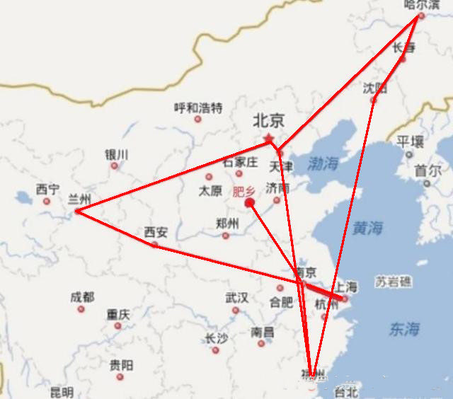 图-第一次“飞行”线路图(邯郸市-上海市)