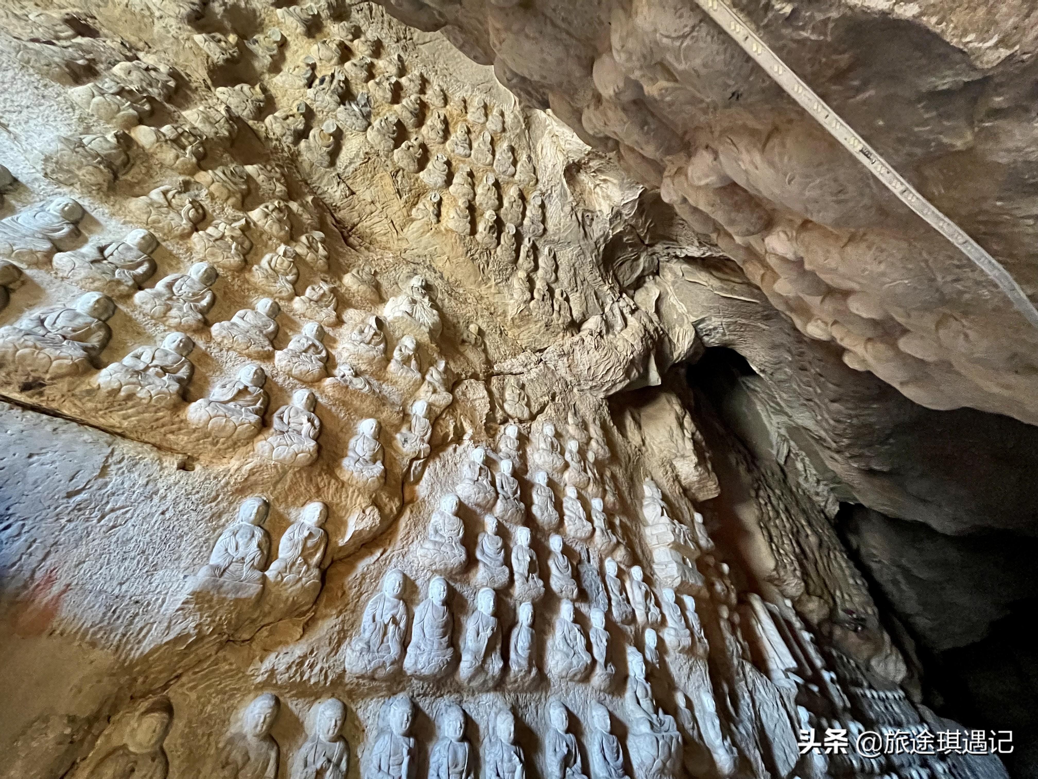 走进洞里,扑面而来的是十分凉爽的感觉,定睛一看,石壁上到处都是佛像,大大小小密密麻麻的。千佛洞的名字果然是名不虚传。之所以说这个千佛洞神秘,是因为对于这里的建造时间一直是不确定的。