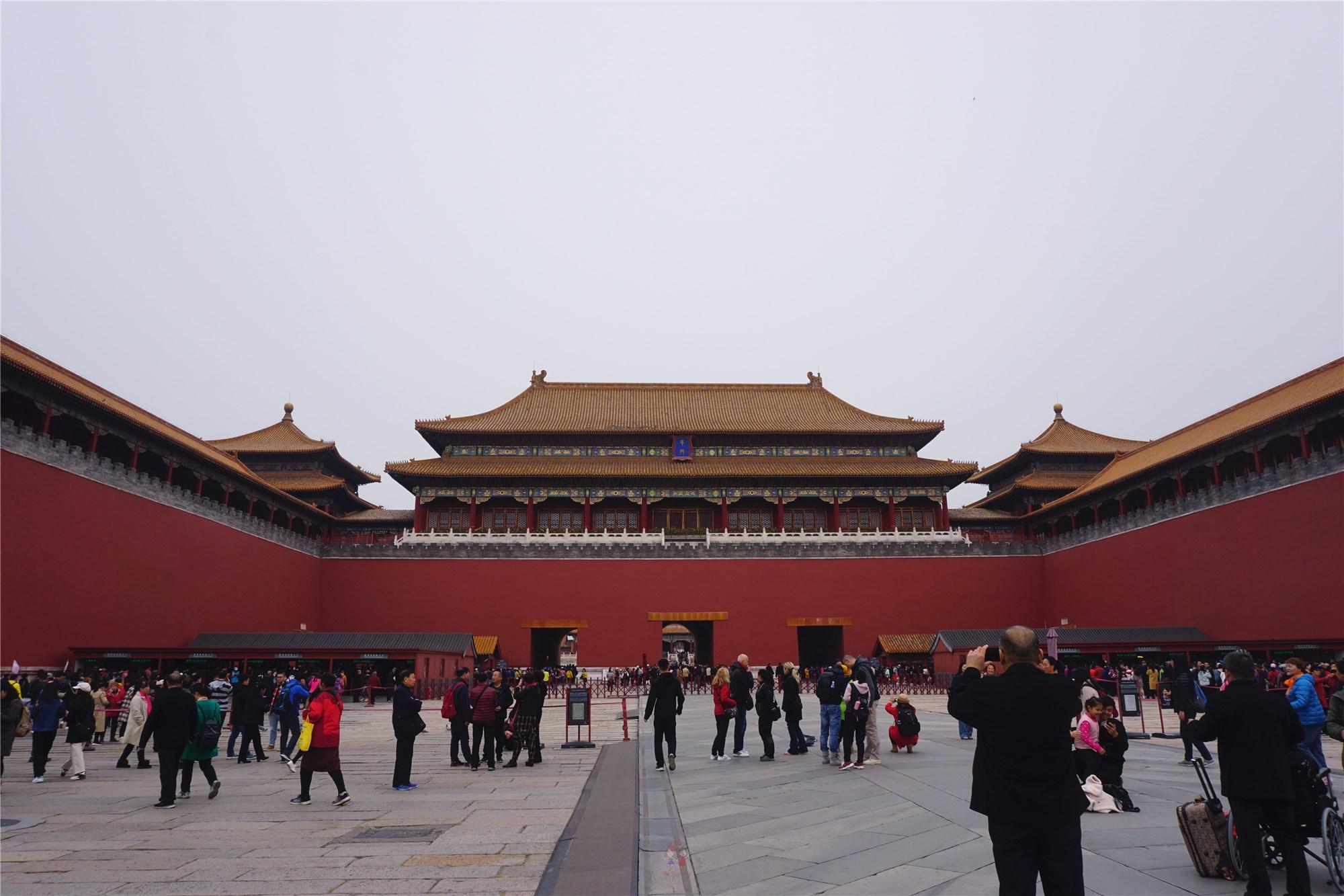 进入故宫前有统一的路线,首先要穿过两个门,第一个便是天安门。所以如果是第一次来北京玩,还想看升旗仪式的话,可以当天一早先到天安门广场看升旗仪式,然后转转天安门广场,之后就可以参观故宫了,这样的路线最省时、省力。