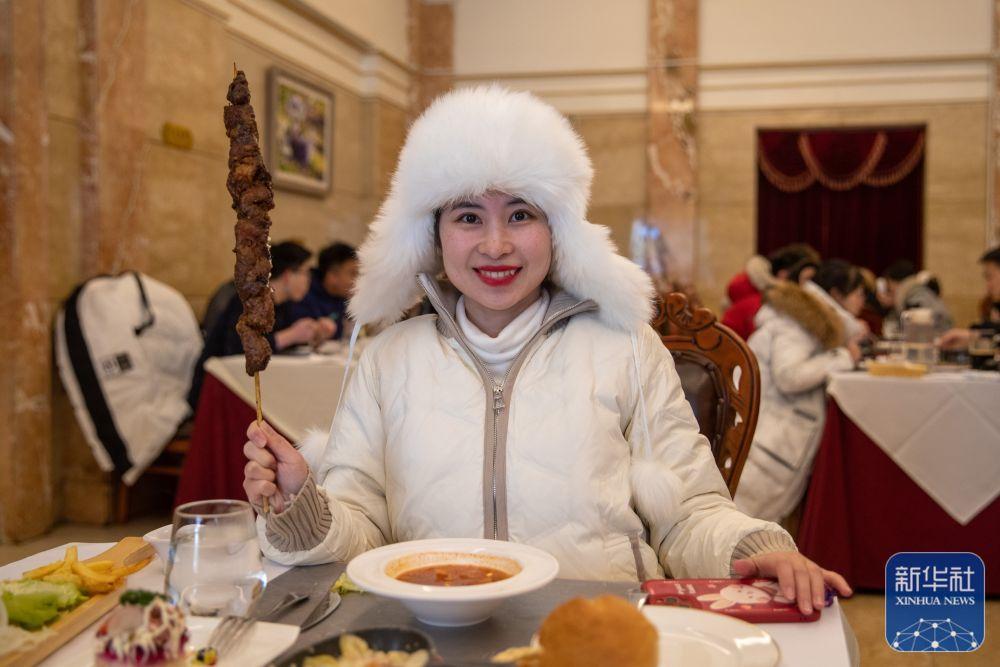 1月24日,在黑龙江哈尔滨市道里区马迭尔西餐厅,人们在享用美食。新华社记者 张涛 摄