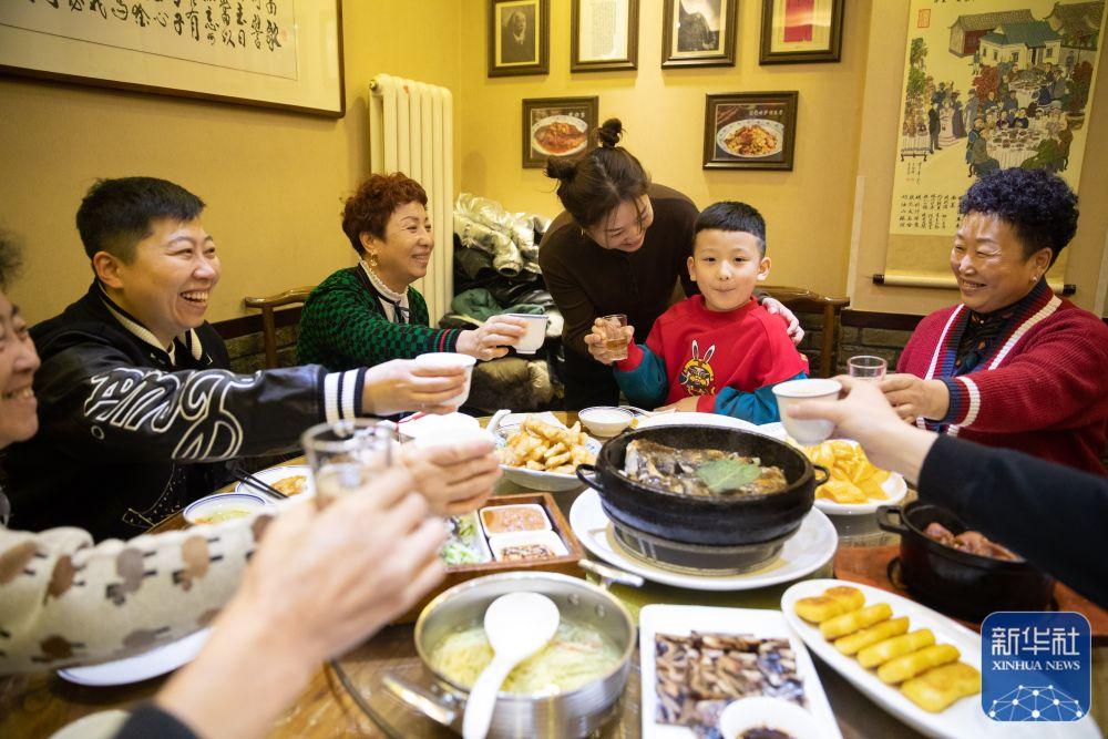1月24日,在黑龙江哈尔滨市道里区老厨家中央大街店,人们聚餐庆祝佳节。新华社记者 张涛 摄